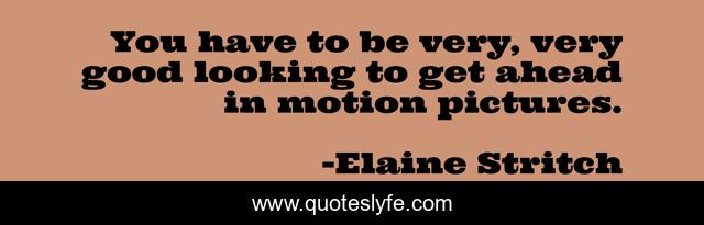 This page presents the quote "You have to be very, very good looking to get ahead in motion pictures.". Author of this quote is Elaine Stritch. This quote is about looking, ahead,.