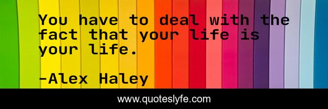 This page presents the quote "You have to deal with the fact that your life is your life.". Author of this quote is Alex Haley. .