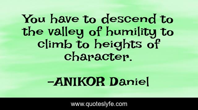 This page presents the quote "You have to descend to the valley of humility to climb to heights of character.". Author of this quote is ANIKOR Daniel. .