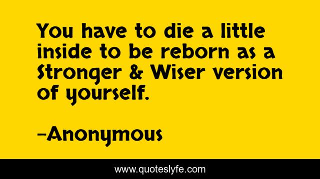 This page presents the quote "You have to die a little inside to be reborn as a Stronger & Wiser version of yourself.". Author of this quote is Anonymous. .
