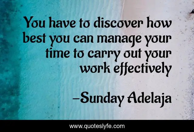 This page presents the quote "You have to discover how best you can manage your time to carry out your work effectively". Author of this quote is Sunday Adelaja. This quote is about life, work, finance, effective, money, employment, blessing, time-management, utilizing-time,.