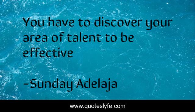 This page presents the quote "You have to discover your area of talent to be effective". Author of this quote is Sunday Adelaja. This quote is about love, people, money, principles, selflessness, employment, worship, impact, living,.