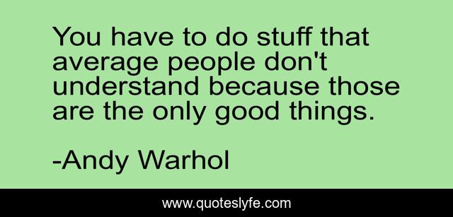 This page presents the quote "You have to do stuff that average people don't understand because those are the only good things.". Author of this quote is Andy Warhol. This quote is about originality, warhol, individuality, creativity,.