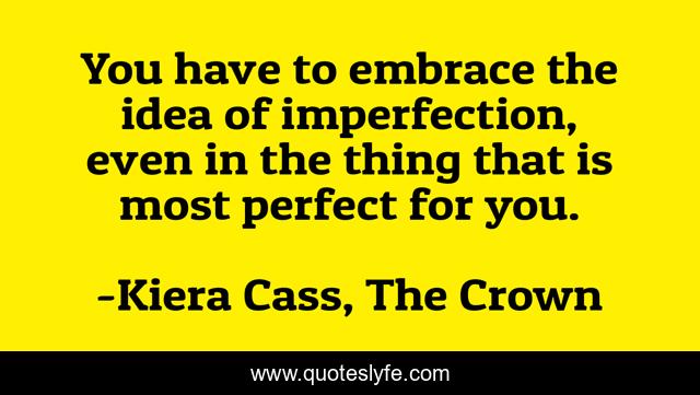This page presents the quote "You have to embrace the idea of imperfection, even in the thing that is most perfect for you.". Author of this quote is Kiera Cass, The Crown. This quote is about life, flaws, love, imperfection, the-selection, perfection, kiera-cass, the-crown, mgg,.