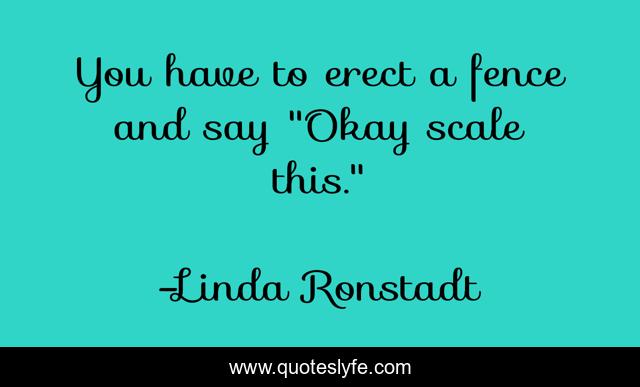 This page presents the quote "You have to erect a fence and say "Okay scale this."". Author of this quote is Linda Ronstadt. .