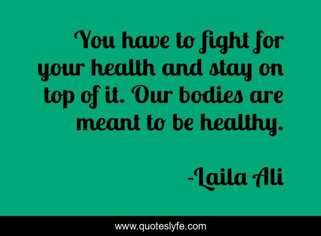 This page presents the quote "You have to fight for your health and stay on top of it. Our bodies are meant to be healthy.". Author of this quote is Laila Ali. This quote is about healthy, fight,.