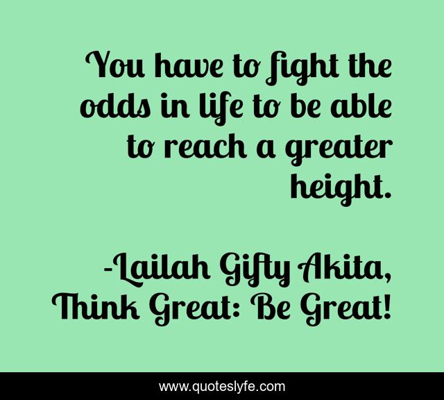 "Lailah Gifty Akita, Think Great: Be Great! Quotes." Quoteslyfe.com, 2025. Sun. 07 Dec. 2025. <https://www.quoteslyfe.com/quote/You-have-to-fight-the-odds-in-254004>.