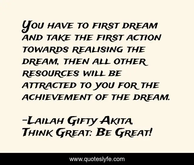 "Lailah Gifty Akita, Think Great: Be Great! Quotes." Quoteslyfe.com, 2025. Sun. 07 Dec. 2025. <https://www.quoteslyfe.com/quote/You-have-to-first-dream-and-take-95383>.
