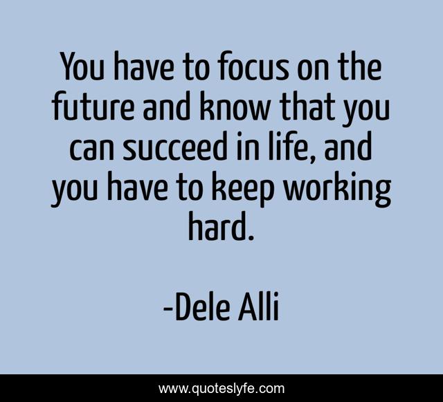 This page presents the quote "You have to focus on the future and know that you can succeed in life, and you have to keep working hard.". Author of this quote is Dele Alli. This quote is about life, working hard, focus,.