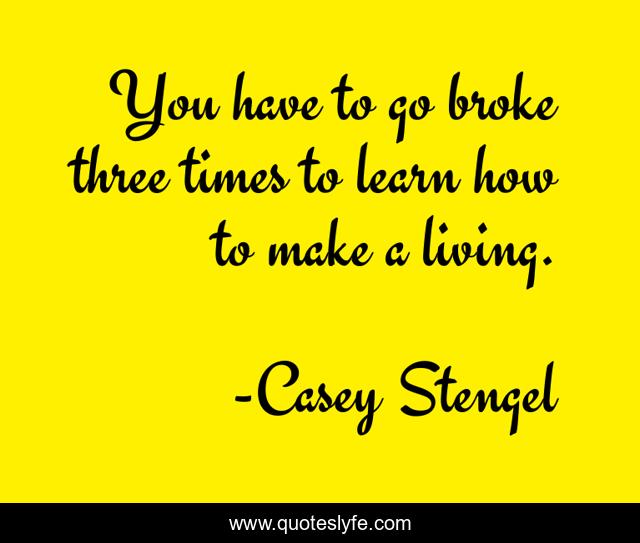 This page presents the quote "You have to go broke three times to learn how to make a living.". Author of this quote is Casey Stengel. This quote is about living, learn,.