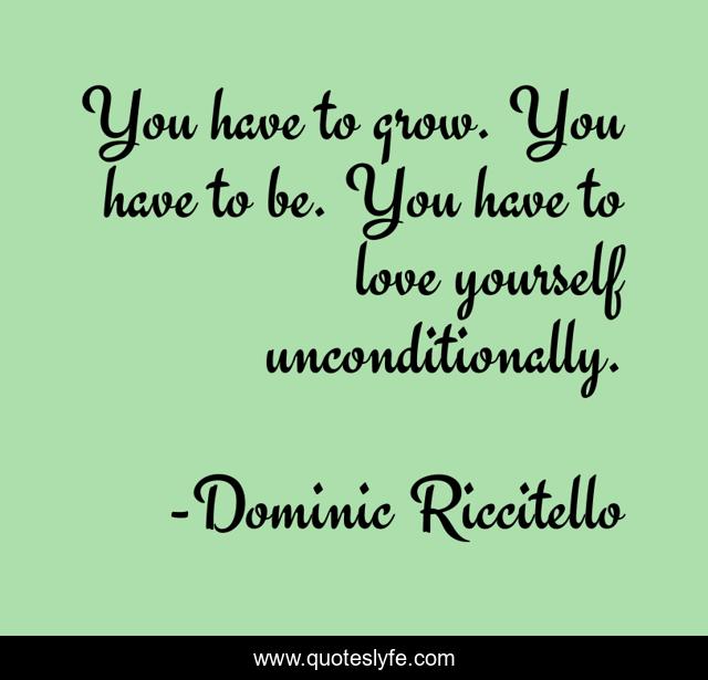 This page presents the quote "You have to grow. You have to be. You have to love yourself unconditionally.". Author of this quote is Dominic Riccitello. This quote is about love, quote, becoming, love-yourself, growing, grow, yourself, worth, affection,.
