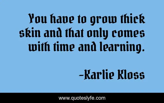 This page presents the quote "You have to grow thick skin and that only comes with time and learning.". Author of this quote is Karlie Kloss. This quote is about grow, time,.