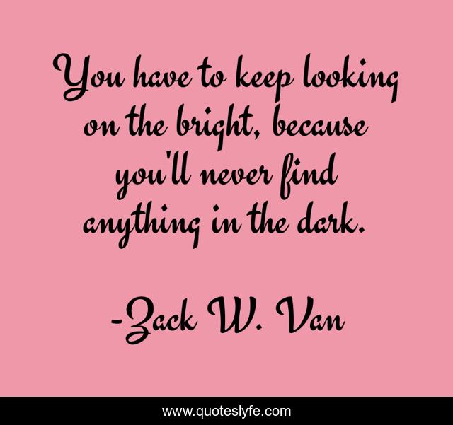 This page presents the quote "You have to keep looking on the bright, because you'll never find anything in the dark.". Author of this quote is Zack W. Van. This quote is about enthusiasm, happiness, inspirational, truth, uplifting,.