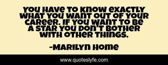 This page presents the quote "You have to know exactly what you want out of your career. If you want to be a star you don't bother with other things.". Author of this quote is Marilyn Home. .