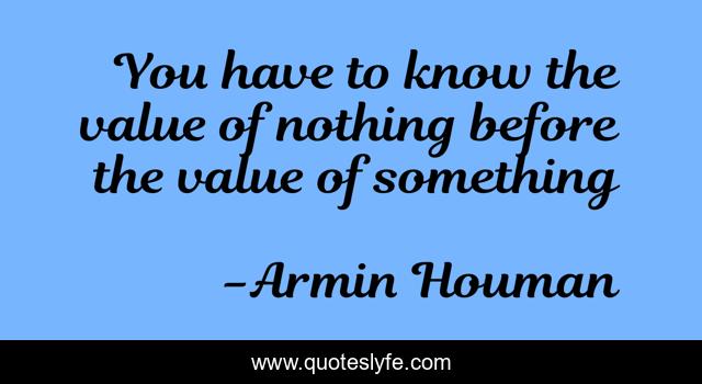 This page presents the quote "You have to know the value of nothing before the value of something". Author of this quote is Armin Houman. This quote is about quotes, life, motivation, value, inspiration,.