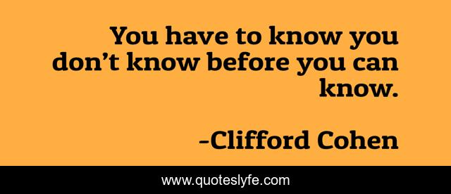 "Clifford Cohen Quotes." Quoteslyfe.com, 2025. Fri. 05 Dec. 2025. <https://www.quoteslyfe.com/quote/You-have-to-know-you-don-t-116913>.