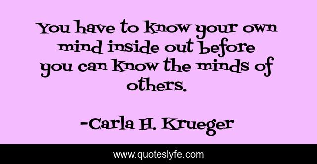 This page presents the quote "You have to know your own mind inside out before you can know the minds of others.". Author of this quote is Carla H. Krueger. This quote is about quote, lesson, mind, life, psychology,.