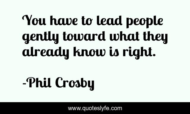 This page presents the quote "You have to lead people gently toward what they already know is right.". Author of this quote is Phil Crosby. .