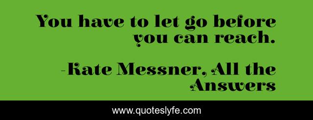 This page presents the quote "You have to let go before you can reach.". Author of this quote is Kate Messner, All the Answers. This quote is about enthusiasm, anxiety, inspirational,.