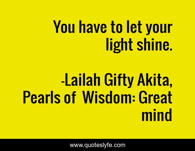 "Lailah Gifty Akita, Pearls of Wisdom: Great mind Quotes." Quoteslyfe.com, 2025. Fri. 05 Dec. 2025. <https://www.quoteslyfe.com/quote/You-have-to-let-your-light-shine-85583>.