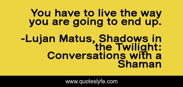 This page presents the quote "You have to live the way you are going to end up.". Author of this quote is Lujan Matus, Shadows in the Twilight: Conversations with a Shaman. This quote is about shamanism, relationships-advice, wise-words,.