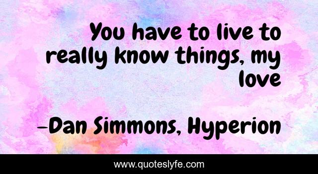 This page presents the quote "You have to live to really know things, my love". Author of this quote is Dan Simmons, Hyperion. .