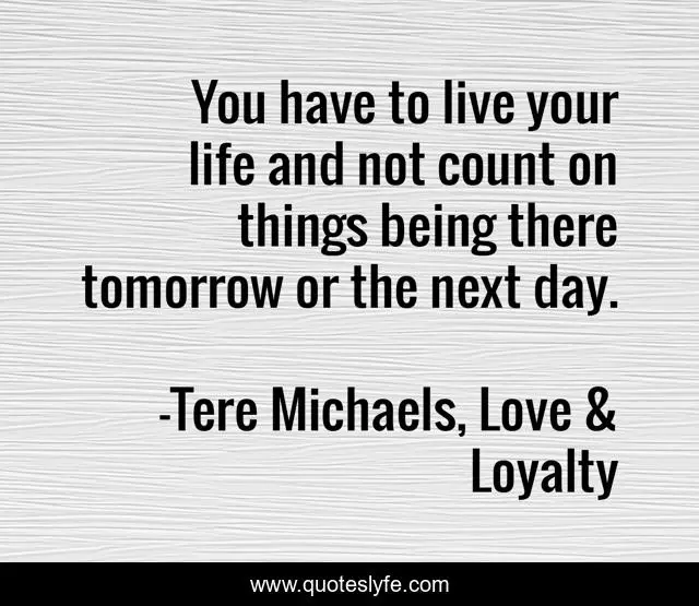 This page presents the quote "You have to live your life and not count on things being there tomorrow or the next day.". Author of this quote is Tere Michaels, Love & Loyalty. This quote is about life, life-lessons,.