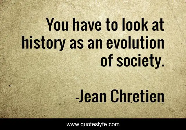 This page presents the quote "You have to look at history as an evolution of society.". Author of this quote is Jean Chretien. This quote is about society, evolution,.