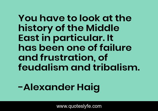 This page presents the quote "You have to look at the history of the Middle East in particular. It has been one of failure and frustration, of feudalism and tribalism.". Author of this quote is Alexander Haig. This quote is about frustration, history,.