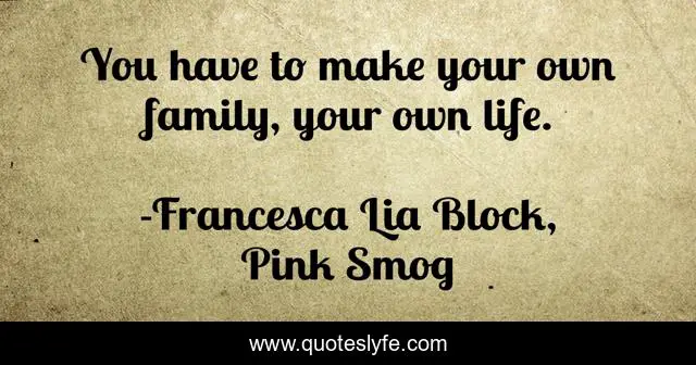 "Francesca Lia Block, Pink Smog Quotes." Quoteslyfe.com, 2025. Fri. 05 Dec. 2025. <https://www.quoteslyfe.com/quote/You-have-to-make-your-own-family-85895>.