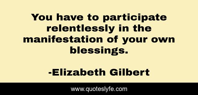 This page presents the quote "You have to participate relentlessly in the manifestation of your own blessings.". Author of this quote is Elizabeth Gilbert. This quote is about blessings, happiness,.