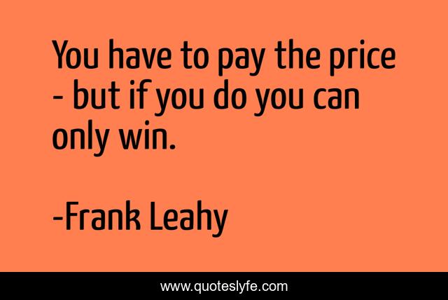 This page presents the quote "You have to pay the price - but if you do you can only win.". Author of this quote is Frank Leahy. .
