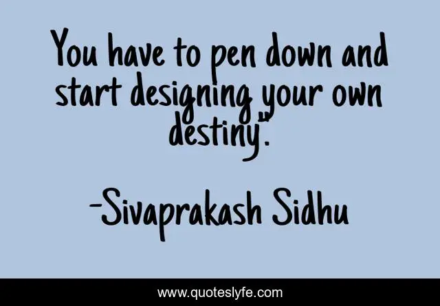 This page presents the quote "You have to pen down and start designing your own destiny".". Author of this quote is Sivaprakash Sidhu. This quote is about life-philosophy, life, destiny, lessons-learned-in-life,.