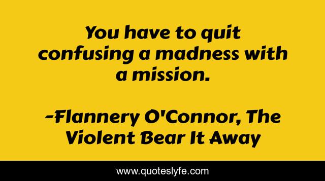 "Flannery O'Connor, The Violent Bear It Away Quotes." Quoteslyfe.com, 2025. Fri. 05 Dec. 2025. <https://www.quoteslyfe.com/quote/You-have-to-quit-confusing-a-madness-221112>.