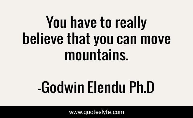 This page presents the quote "You have to really believe that you can move mountains.". Author of this quote is Godwin Elendu Ph.D. This quote is about educational-philosophy, accomplishment, success-strategies, happiness-positive-outlook, life-and-living, wealth,.