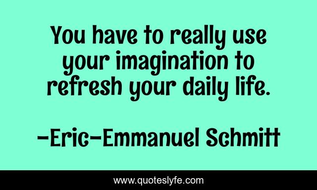This page presents the quote "You have to really use your imagination to refresh your daily life.". Author of this quote is Eric-Emmanuel Schmitt. This quote is about life, daily,.