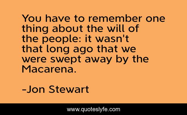 This page presents the quote "You have to remember one thing about the will of the people: it wasn't that long ago that we were swept away by the Macarena.". Author of this quote is Jon Stewart. This quote is about politics, humor, public-opinion, democracy, government,.