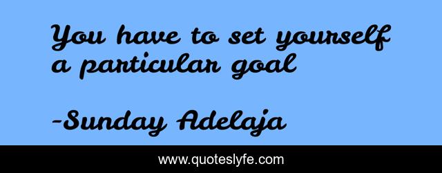 This page presents the quote "You have to set yourself a particular goal". Author of this quote is Sunday Adelaja. This quote is about set, mission, calling, goals, achievement, purpose,.