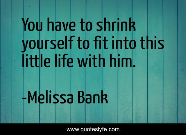 This page presents the quote "You have to shrink yourself to fit into this little life with him.". Author of this quote is Melissa Bank. This quote is about relationships, life, love, affection,.