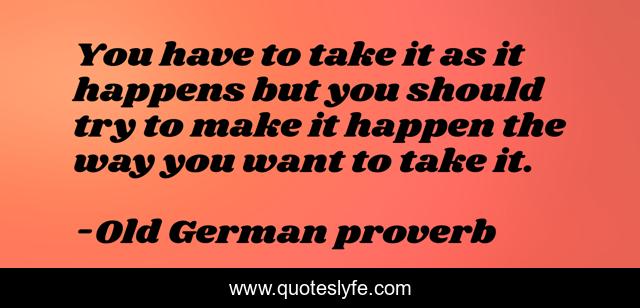 This page presents the quote "You have to take it as it happens but you should try to make it happen the way you want to take it.". Author of this quote is Old German proverb. .