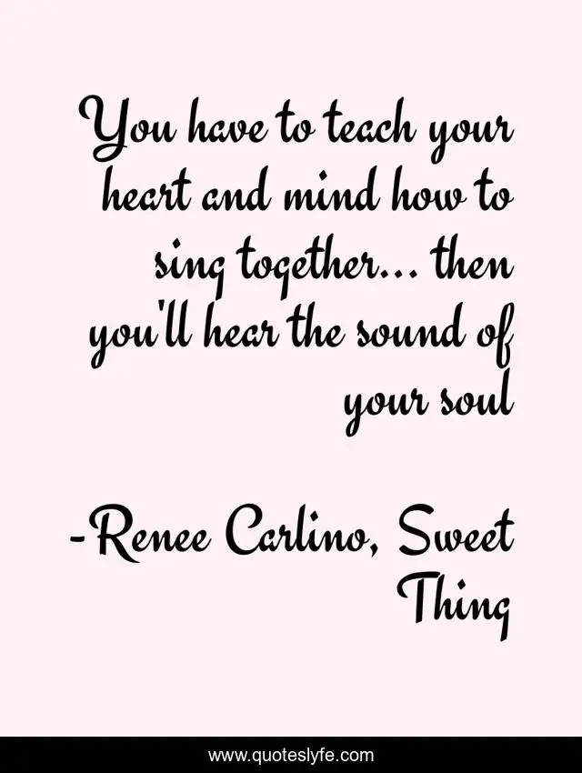 This page presents the quote "You have to teach your heart and mind how to sing together... then you'll hear the sound of your soul". Author of this quote is Renee Carlino, Sweet Thing. This quote is about enthusiasm, inspirational,.