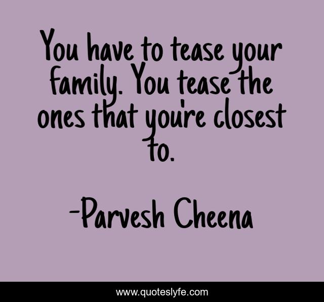 "Parvesh Cheena Quotes." Quoteslyfe.com, 2025. Sat. 06 Dec. 2025. <https://www.quoteslyfe.com/quote/You-have-to-tease-your-family-You-299123>.