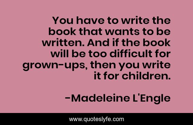 This page presents the quote "You have to write the book that wants to be written. And if the book will be too difficult for grown-ups, then you write it for children.". Author of this quote is Madeleine L'Engle. This quote is about grown-ups, writing, write, writers, books, children, difficult,.