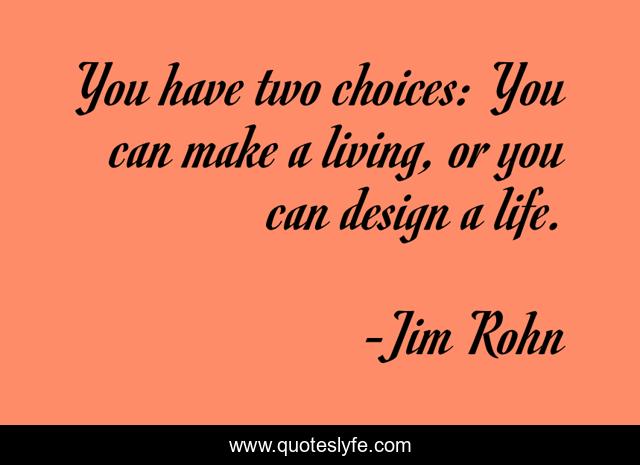 This page presents the quote "You have two choices: You can make a living, or you can design a life.". Author of this quote is Jim Rohn. This quote is about life-and-living, choice,.