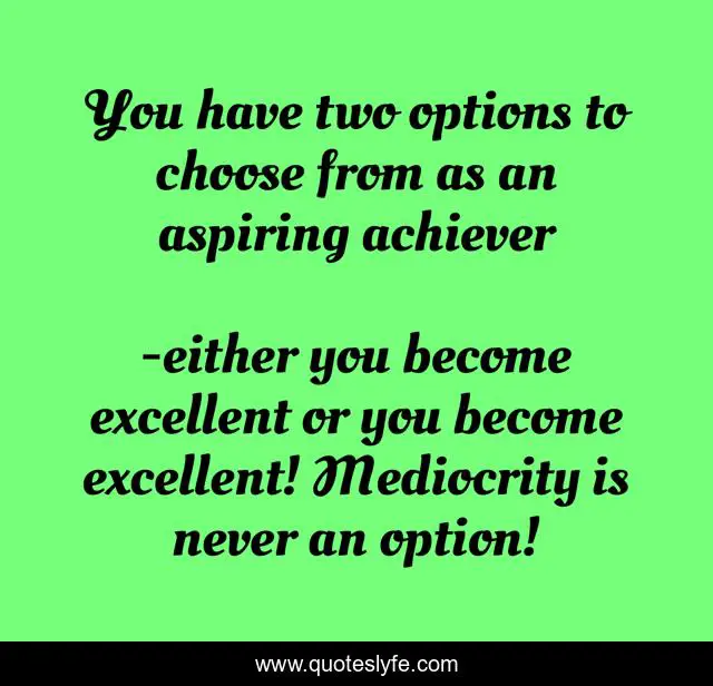 "either you become excellent or you become excellent! Mediocrity is never an option! Quotes." Quoteslyfe.com, 2025. Fri. 05 Dec. 2025. <https://www.quoteslyfe.com/quote/You-have-two-options-to-choose-from-129819>.