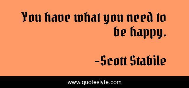This page presents the quote "You have what you need to be happy.". Author of this quote is Scott Stabile. This quote is about happy, happiness, truth, inspiration,.