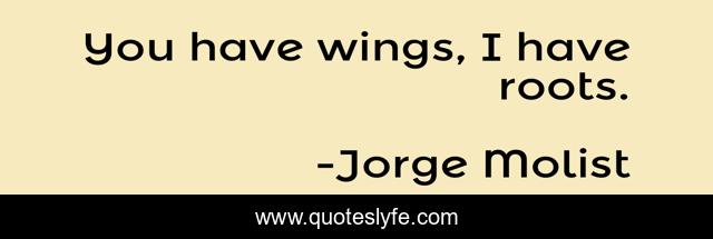"Jorge Molist Quotes." Quoteslyfe.com, 2025. Fri. 05 Dec. 2025. <https://www.quoteslyfe.com/quote/You-have-wings-I-have-roots-171666>.