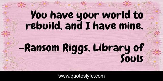 This page presents the quote "You have your world to rebuild, and I have mine.". Author of this quote is Ransom Riggs, Library of Souls. This quote is about jacob, world, rebuild, emma, mine,.
