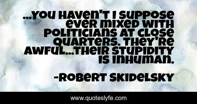 This page presents the quote "...You haven't I suppose ever mixed with politicians at close quarters. They're awful...their stupidity is inhuman.". Author of this quote is Robert Skidelsky. This quote is about politics, humour,.