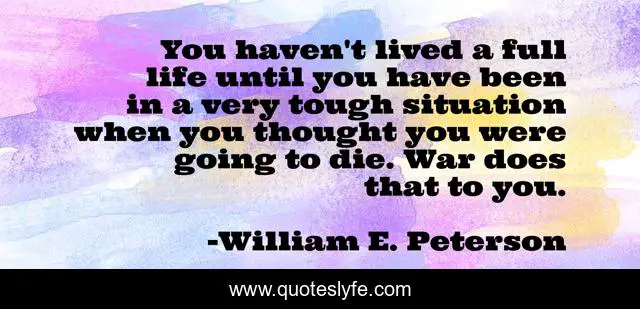 This page presents the quote "You haven't lived a full life until you have been in a very tough situation when you thought you were going to die. War does that to you.". Author of this quote is William E. Peterson. This quote is about life, death, danger, scared, viet-nam, war, thoughts,.